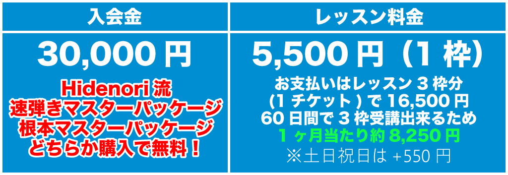 Hidenori Music Schoolはチケットを購入しない一度きりのレッスンも実施しています。
